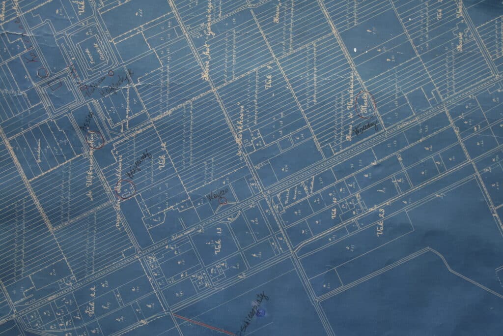 Deel van kaart waarop de Landwacht en SD de verzetshaarden in Veenhuizen hebben aangegeven, Collectie Gevangenismuseum Veenhuizen.